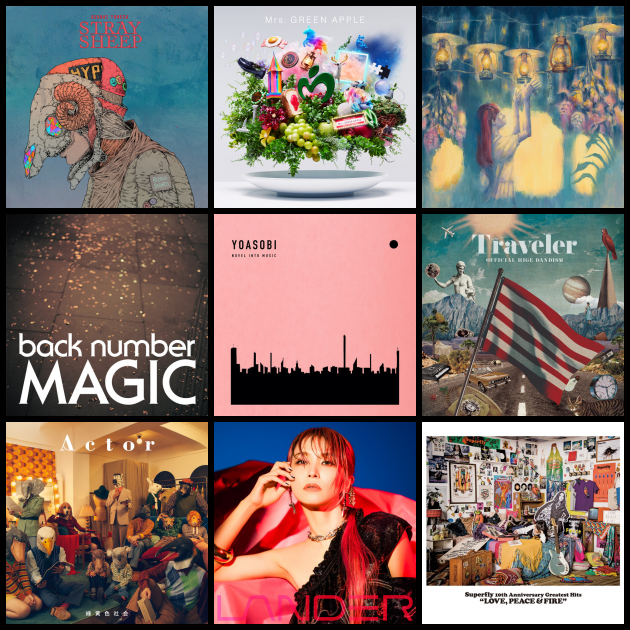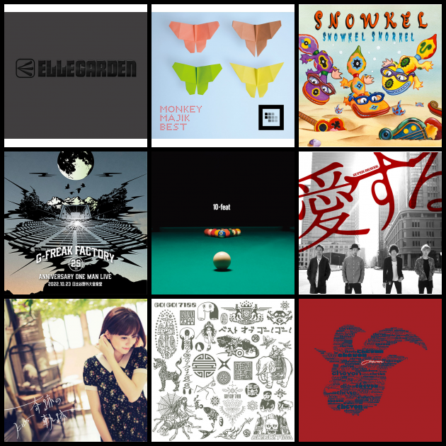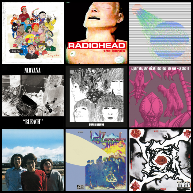 これまで聴いてきたアルバムでお気に入りの9枚です! 振り幅がすごいかもしれませんが、激しくても優しくて曲順がよくどの曲もそれぞれのポジションで活躍しているアルバムが好きです。 是非聴いてみてください!